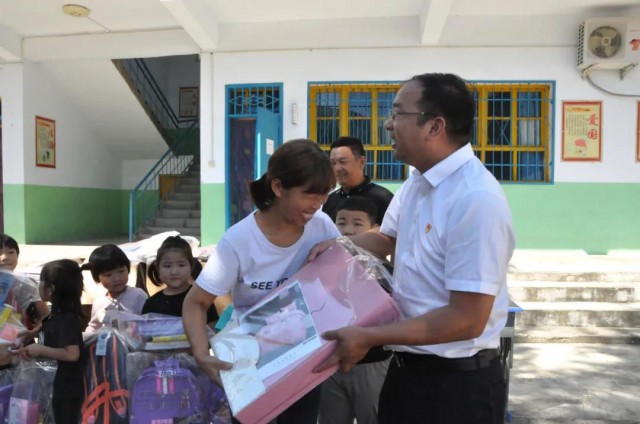 本網(wǎng)訊 9月3日,在新學期來臨之際,炎黃科技園聯(lián)合黨支部書 記、執(zhí)行總經(jīng)理楊哲帶領(lǐng)聯(lián)合黨支部的黨員代表到洛陽市嵩縣大章鎮(zhèn)趙樓村小學走訪慰問,為老師和孩子們送去開學“禮包”。