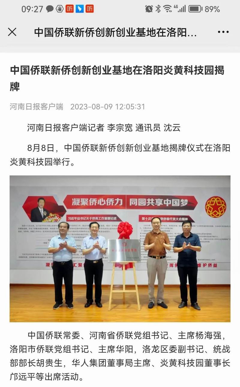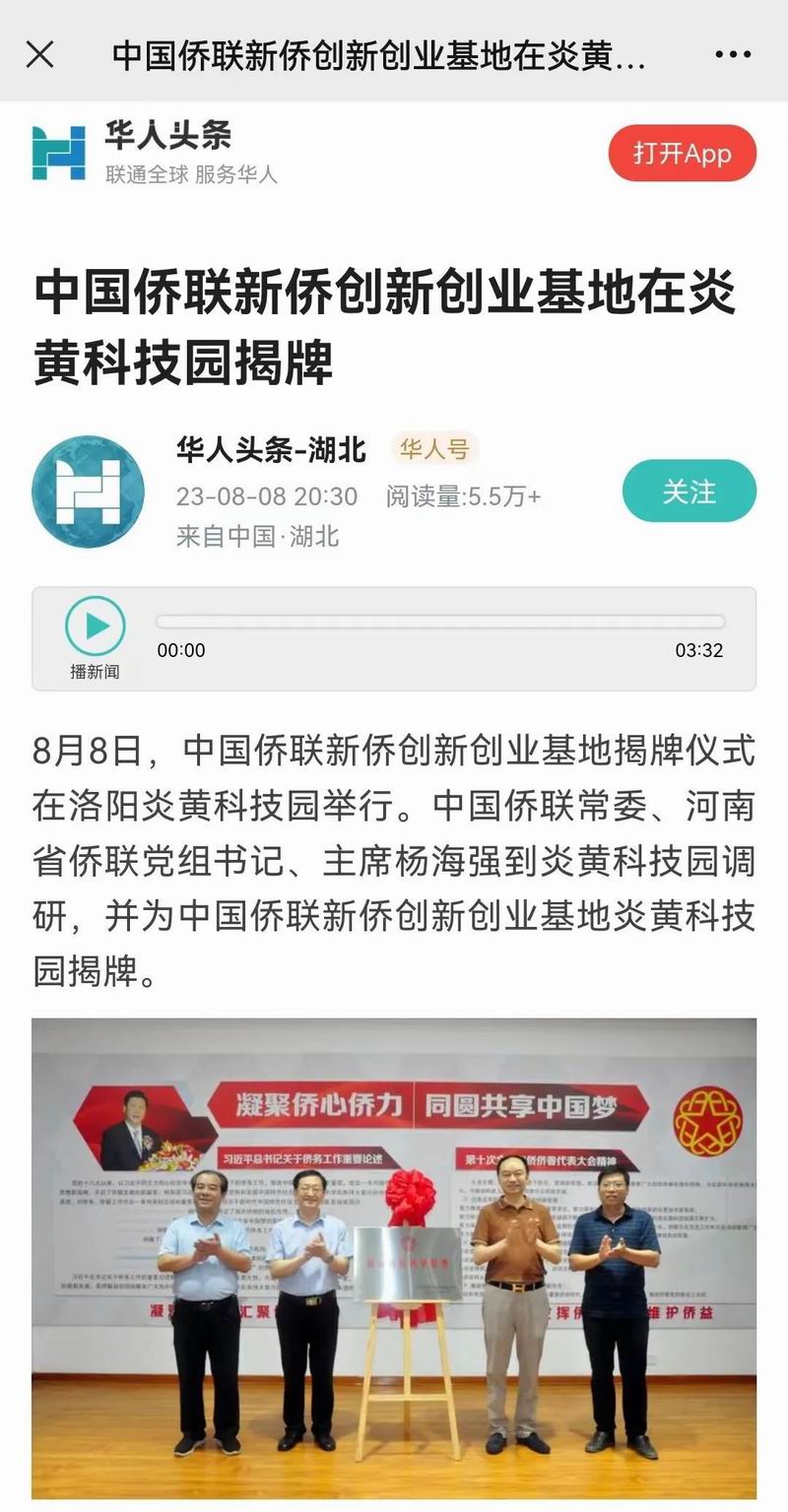位于洛陽市洛龍區(qū)的炎黃科技園,以為僑服務為宗旨,在園區(qū)打造關心、愛心、聯(lián)心、貼心和舒心的“為僑服務站”,受到各級僑聯(lián)組織的肯定和贊揚,被中國僑聯(lián)認定為“新僑創(chuàng)新創(chuàng)業(yè)基地”。近日,中國僑聯(lián)常委、河南省僑聯(lián)黨組書記、主席楊海強到炎黃科技園調(diào)研指導,為中國僑聯(lián)新僑創(chuàng)新創(chuàng)業(yè)基地炎黃科技園揭牌,引起了廣泛的關注。